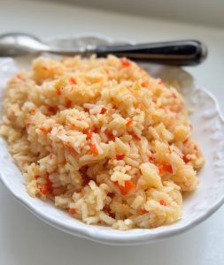 Depois em uma tijela grande coloque 500g de carne moída (da sua preferência), ¼ de xícara de chá de molho de shoyo, 1 colher de café de molho de pimenta (opcional), 1 colher de sopa de mostarda, 1 colher de chá de pimenta do reino, 1 colher de sopa (cheinha) de manteiga, ½ xícara de chá (120g) de arroz agulinha e 1 xícara de chá de cebolinha fresca ou congelada.