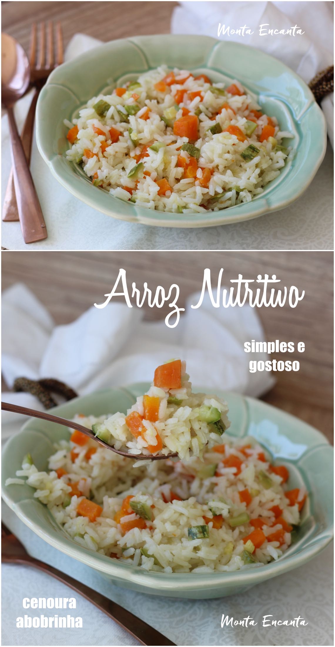 Arroz Nutritivo, leva cenoura e abobrinha, cozido juntos com o arroz. Dá cor, sabor e agrega nutrientes, além de ser uma ótima alternativa para variar o arroz branco de todo dia.