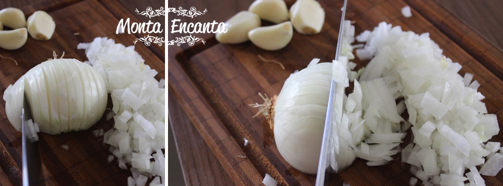 - 1 cebola em cortes uniformes e regulares, brunoise