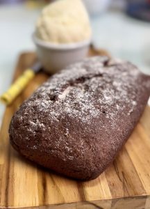 Então, transfira a massa para uma forma de pão previamente untada ou forrada com papel manteiga.