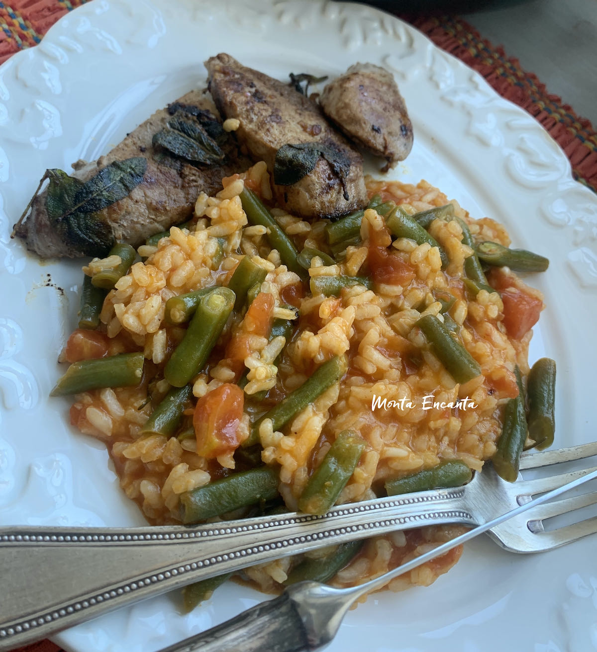 Risoto de tomate com vagem ‘al dente’ surpreende! Simples de fazer ele fica muito saboroso e pronto em 15 minutos. Para isso basta dourar o alho no azeite com páprica doce, depois juntar os tomates, pimenta calabresa seca, folhas de alecrim fresco, vagem picada e o arroz arbóreo. Depois é só adicionar a água aos poucos até o ponto cremoso, “all’onda”, como dizem os italianos e bom apetite! Como acompanhamento do risoto, nossa sugestão é medalhão suíno grelhado na manteiga com alho, limão e sálvia.