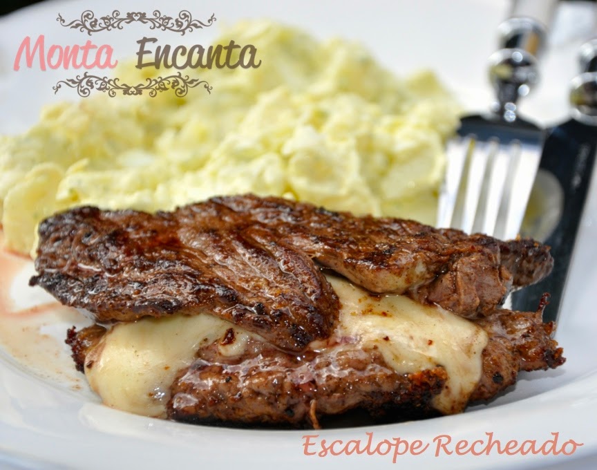 Escalope Recheado com Brie, Filézinho grelhado na manteiga e recheado com Brie.