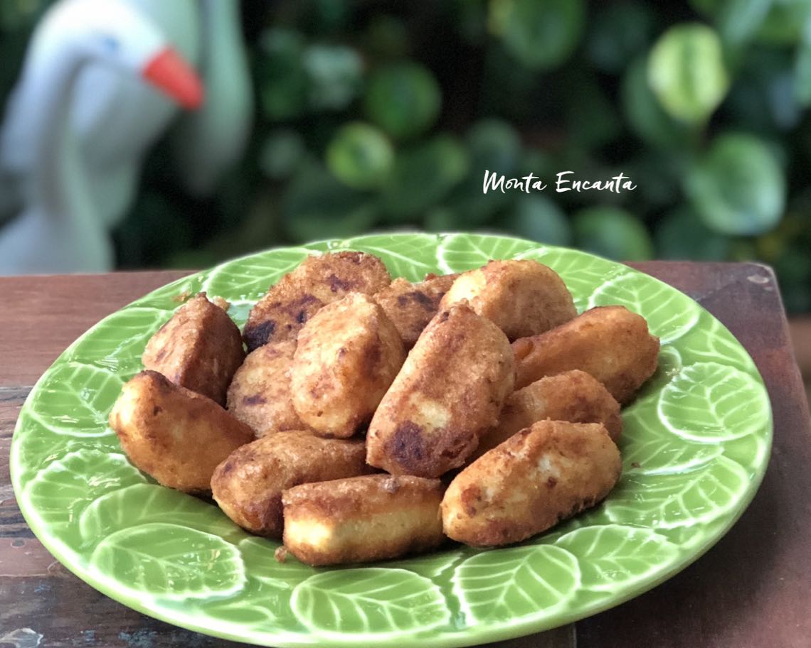 - Com ajuda de uma colher de sopa pegue uma porção de massa e com as mãos, molde em formato de croquete. Deixe na geladeira até a hora de fritar, coberto com plástico filme.