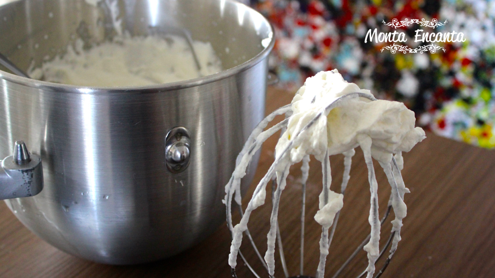 - Quando ele fizer um bico firme é porque esta no ponto ideal, para confeitar. Seu Chantilly esta pronto! Reserve
